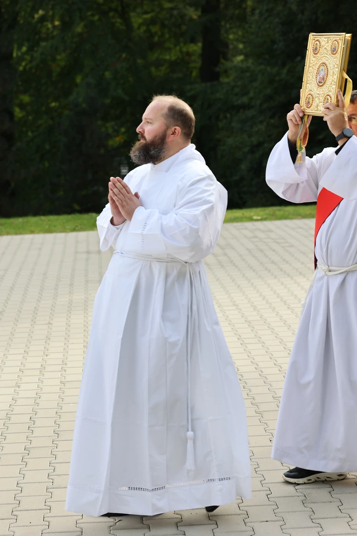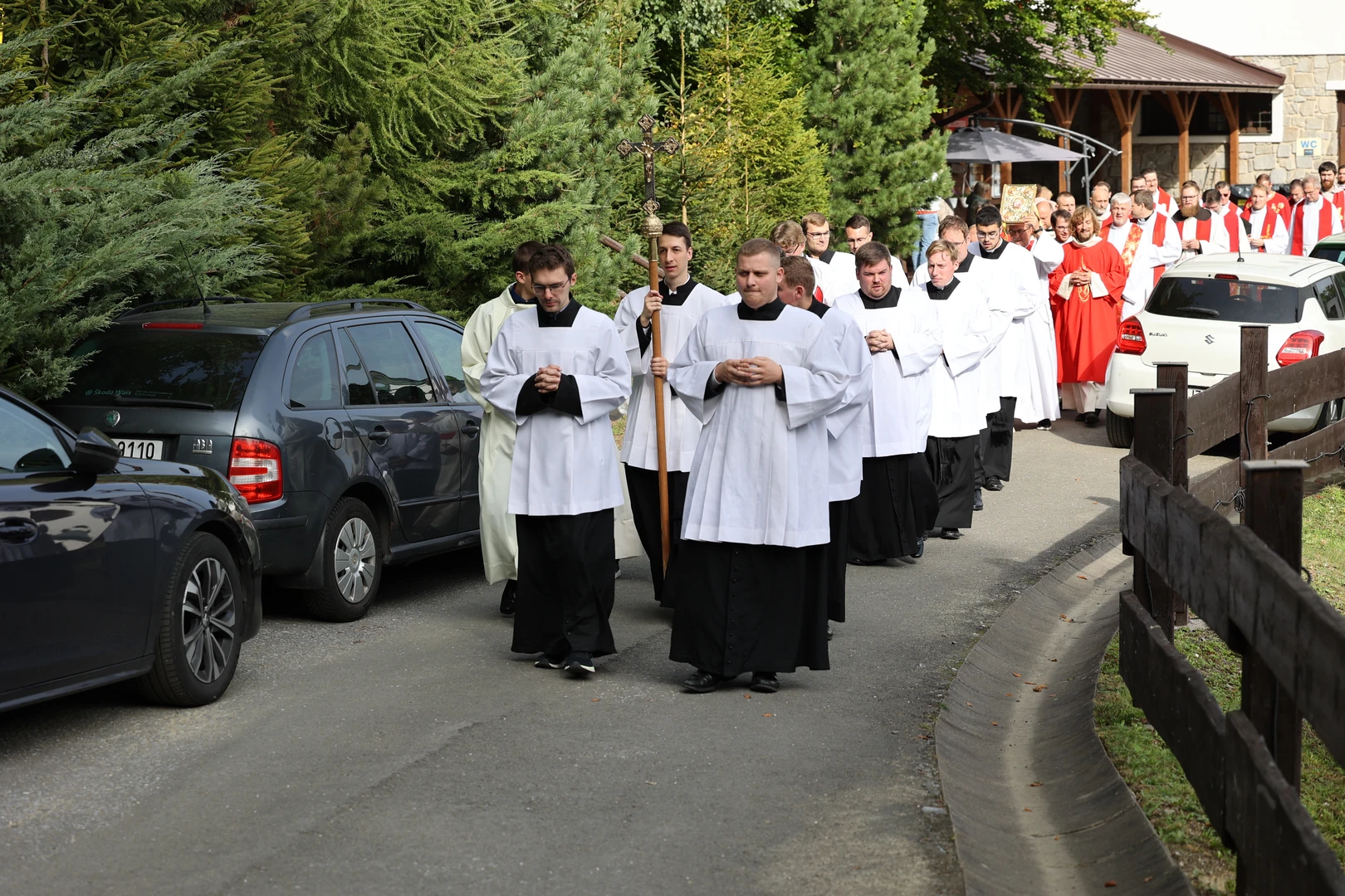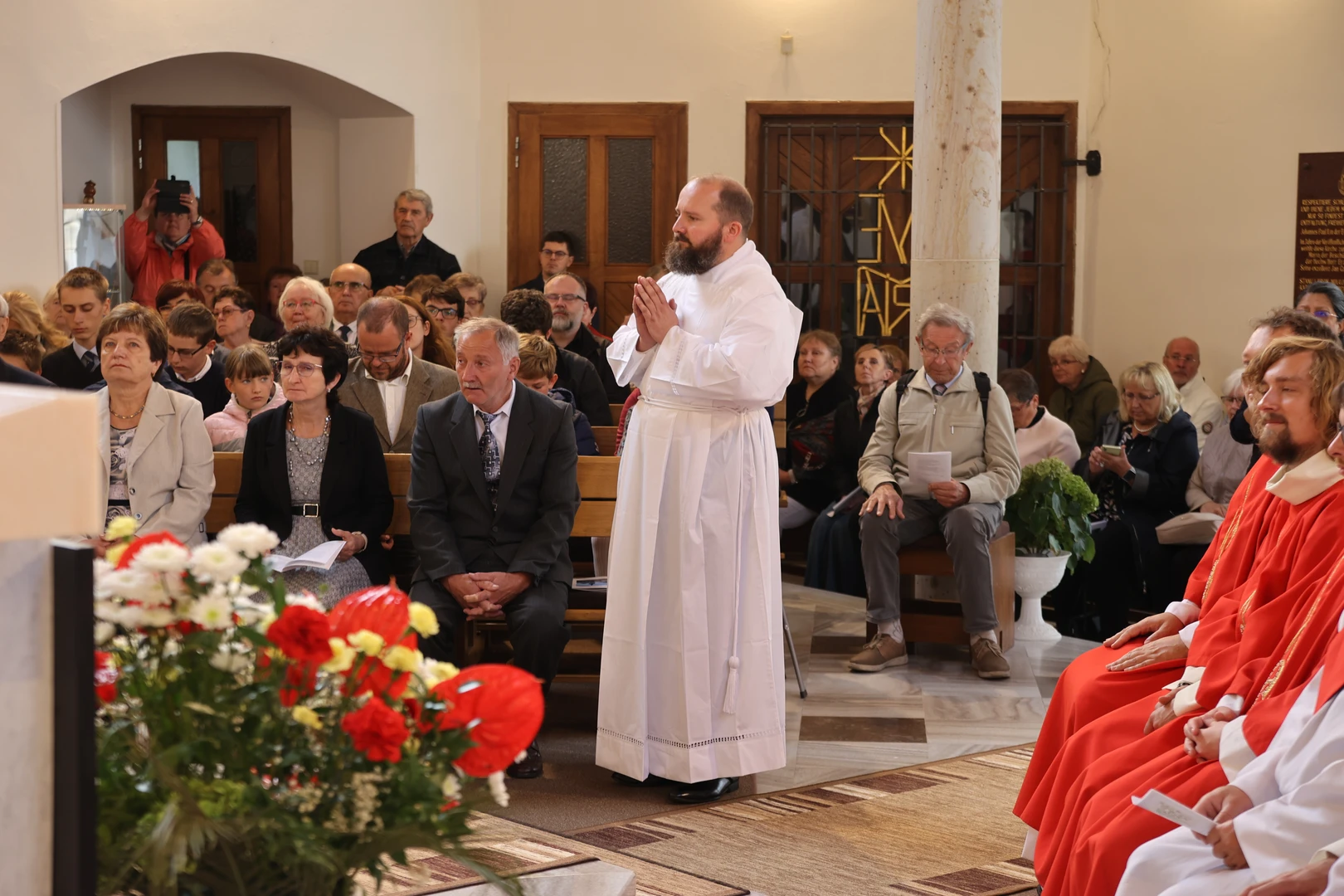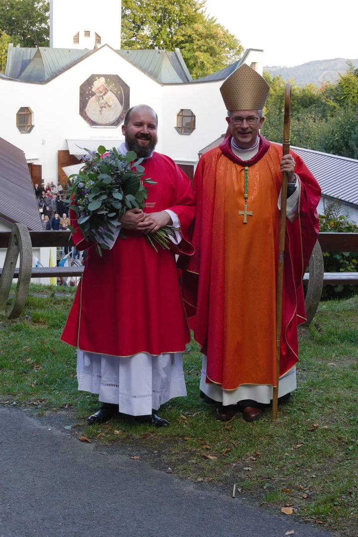Maria Hilf – Poutní místo Panny Marie Pomocné u Zlatých Hor prožilo v neděli 28. září velkou premiéru. Vůbec poprvé se v tamním poutním kostele uskutečnilo jáhenské svěcení. Poutníci zaplnili nejen poutní kostel ale i podstatnou část ambitů a nádvoří poutního místa. Na začátku liturgie bohoslovce Vojtěcha Koláře přivítal rektor poutního místa P. Mariusz Jończyk a popřál mu, aby jeho služba směřovala k Matce Boží. Nového jáhna ke službě posvětil biskup Martin David: „Dnes jsi nás pozval sem do Zlatých hor. Svatý Augustin v jednom ze svých kázání napsal: ‘Shromážděte se u hor Písma Svatého. Zde je potěšení vašeho srdce, zde není nic jedovatého ani nestravitelného; zde jsou nejbohatší pastvy.‘ Přeji Ti, abys dokázal zvát lidi nejen do Zlatých Hor ale především na hory Písma, abys zdobil církev svou službou a konal dobro všem,“ zmínil biskup v promluvě.