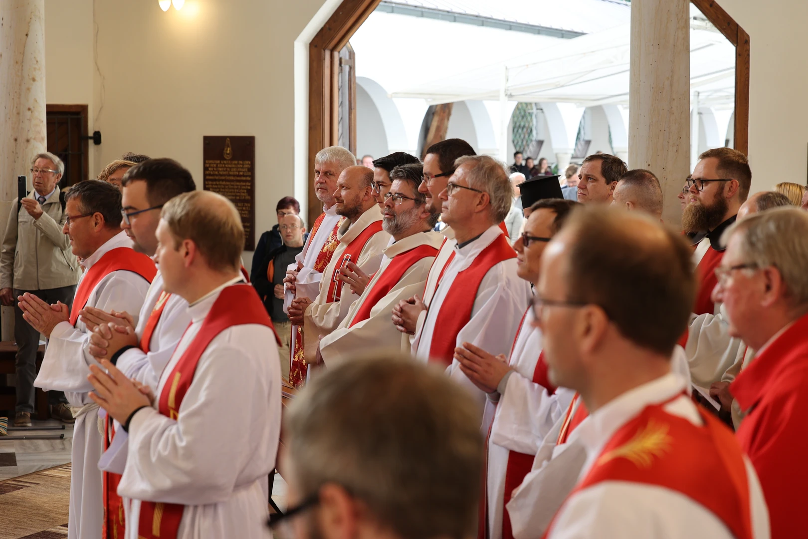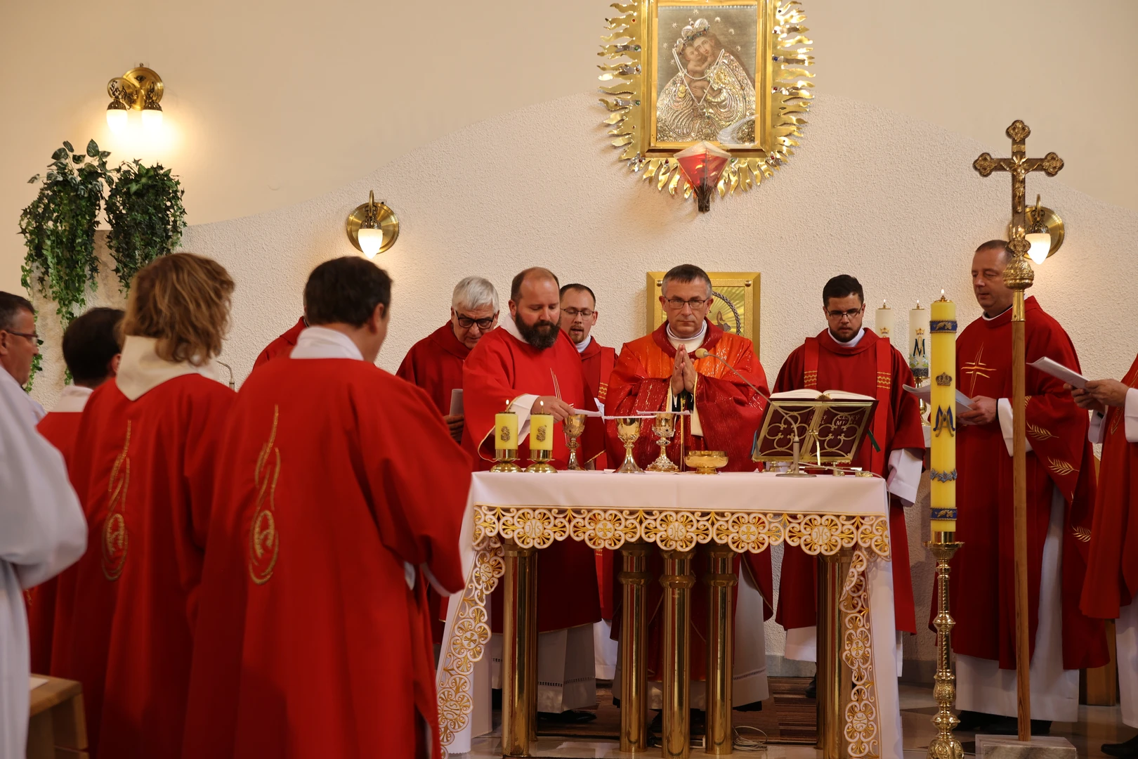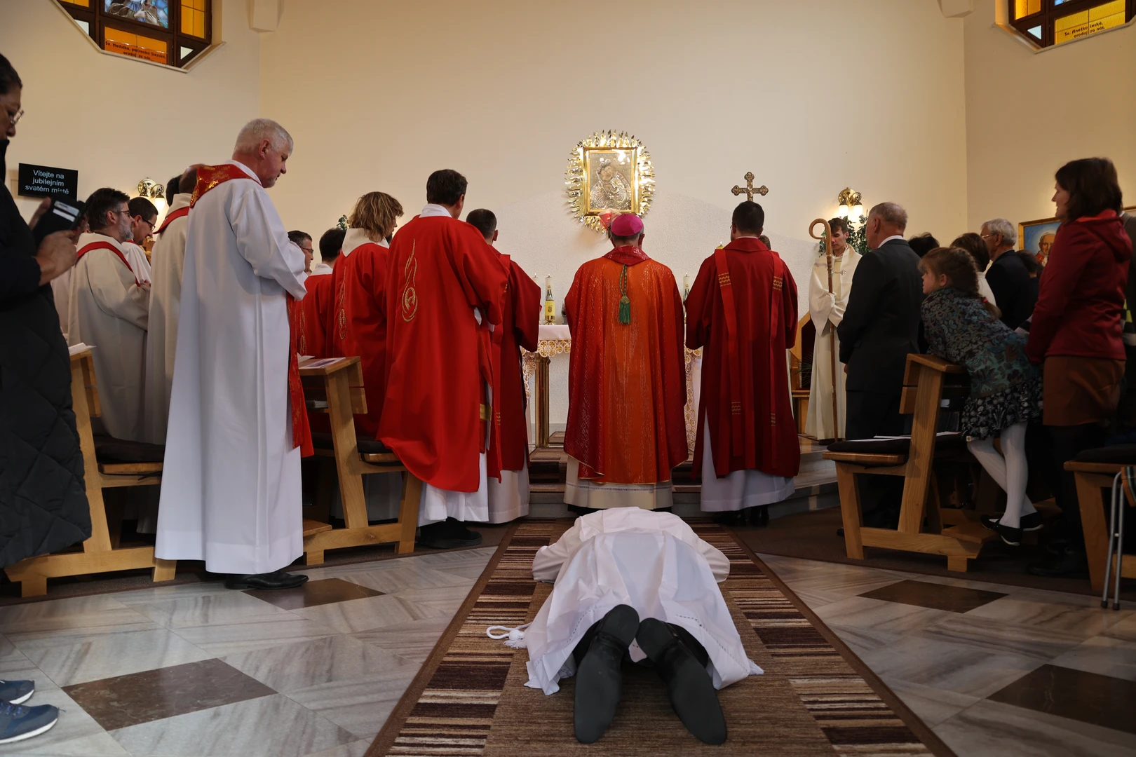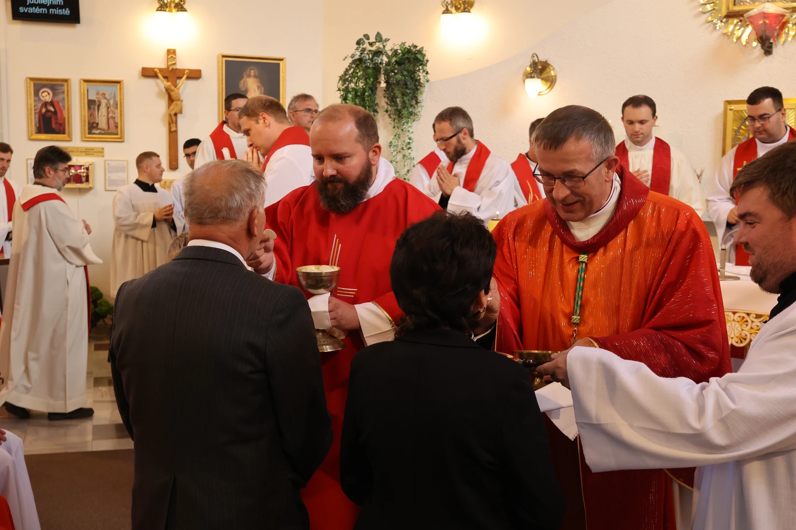 Maria Hilf – Poutní místo Panny Marie Pomocné u Zlatých Hor prožilo v neděli 28. září velkou premiéru. Vůbec poprvé se v tamním poutním kostele uskutečnilo jáhenské svěcení. Poutníci zaplnili nejen poutní kostel ale i podstatnou část ambitů a nádvoří poutního místa. Na začátku liturgie bohoslovce Vojtěcha Koláře přivítal rektor poutního místa P. Mariusz Jończyk a popřál mu, aby jeho služba směřovala k Matce Boží. Nového jáhna ke službě posvětil biskup Martin David: „Dnes jsi nás pozval sem do Zlatých hor. Svatý Augustin v jednom ze svých kázání napsal: ‘Shromážděte se u hor Písma Svatého. Zde je potěšení vašeho srdce, zde není nic jedovatého ani nestravitelného; zde jsou nejbohatší pastvy.‘ Přeji Ti, abys dokázal zvát lidi nejen do Zlatých Hor ale především na hory Písma, abys zdobil církev svou službou a konal dobro všem,“ zmínil biskup v promluvě.