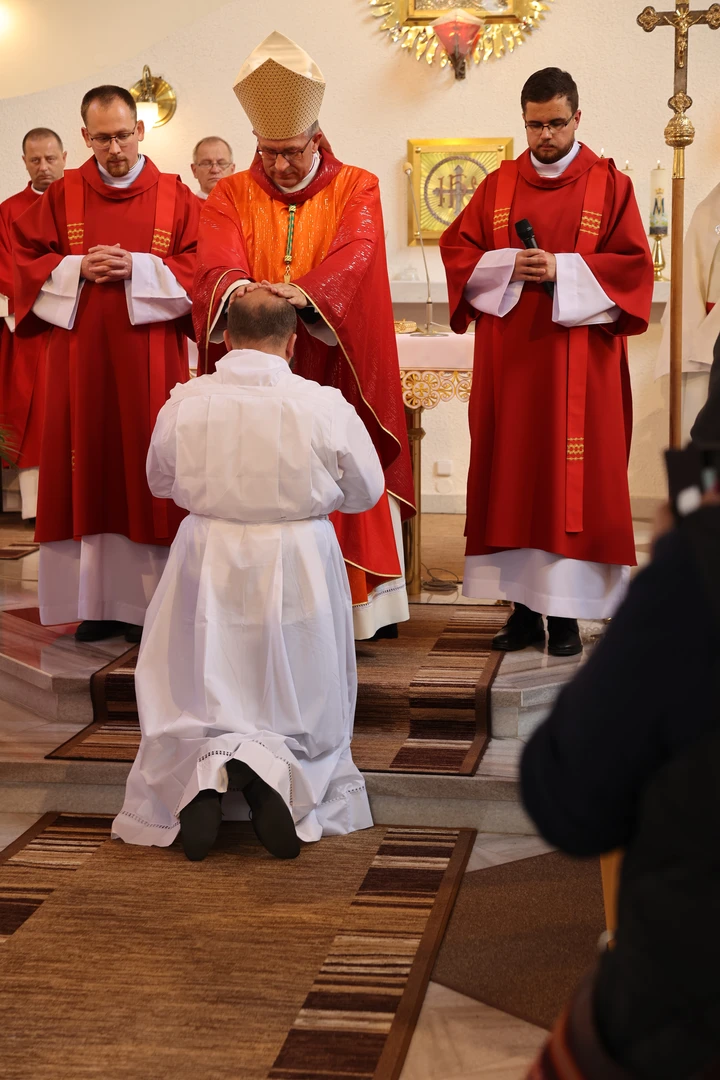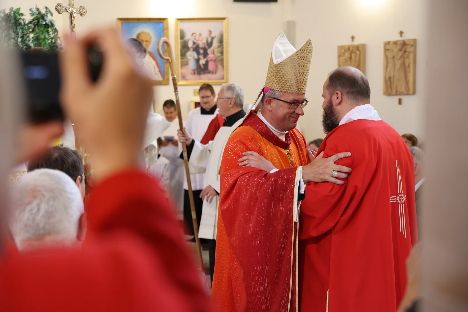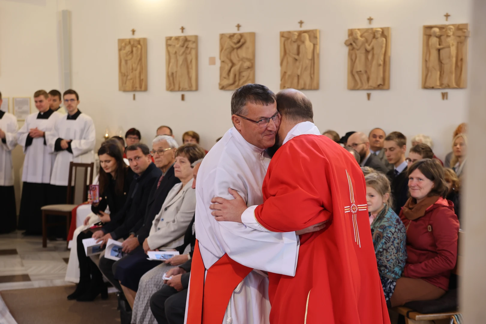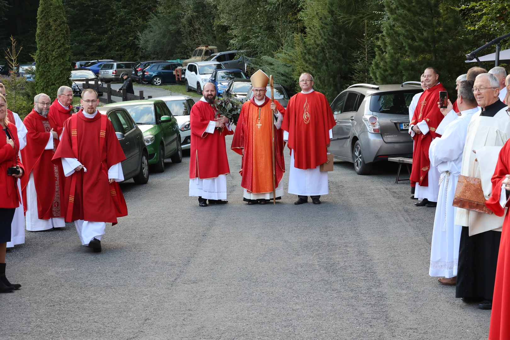 Maria Hilf – Poutní místo Panny Marie Pomocné u Zlatých Hor prožilo v neděli 28. září velkou premiéru. Vůbec poprvé se v tamním poutním kostele uskutečnilo jáhenské svěcení. Poutníci zaplnili nejen poutní kostel ale i podstatnou část ambitů a nádvoří poutního místa. Na začátku liturgie bohoslovce Vojtěcha Koláře přivítal rektor poutního místa P. Mariusz Jończyk a popřál mu, aby jeho služba směřovala k Matce Boží. Nového jáhna ke službě posvětil biskup Martin David: „Dnes jsi nás pozval sem do Zlatých hor. Svatý Augustin v jednom ze svých kázání napsal: ‘Shromážděte se u hor Písma Svatého. Zde je potěšení vašeho srdce, zde není nic jedovatého ani nestravitelného; zde jsou nejbohatší pastvy.‘ Přeji Ti, abys dokázal zvát lidi nejen do Zlatých Hor ale především na hory Písma, abys zdobil církev svou službou a konal dobro všem,“ zmínil biskup v promluvě.