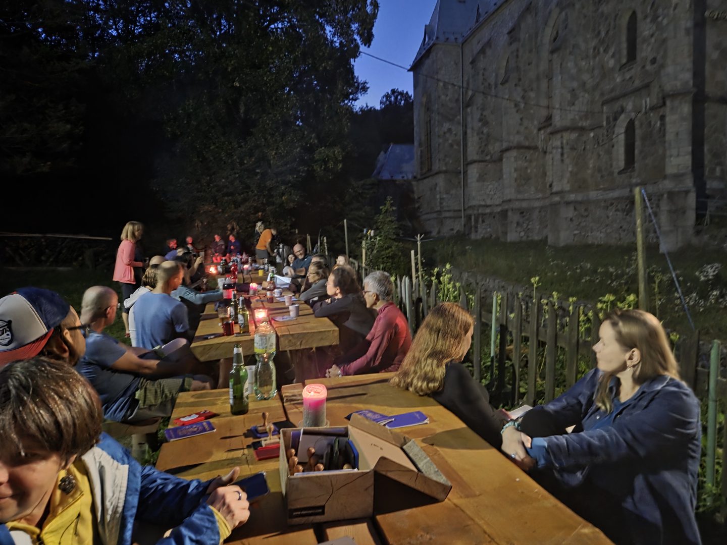Na faře se během roku konají různé brigády, zpravidla poslední víkend v měsíci. Nejde jen o práci – spíš o společné chvíle, kdy se lidé potkají, popovídají si, udělají něco užitečného a třeba i posedí u nových stolů, které byly vyrobeny z přírodní kulatiny doslova od píky.